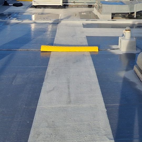 A liquid coating meticulously applied to the termini of laps where initial indications of rust formation have been observed. Additionally, a liquid reinforcement has been implemented on gutters that are beginning to deteriorate.